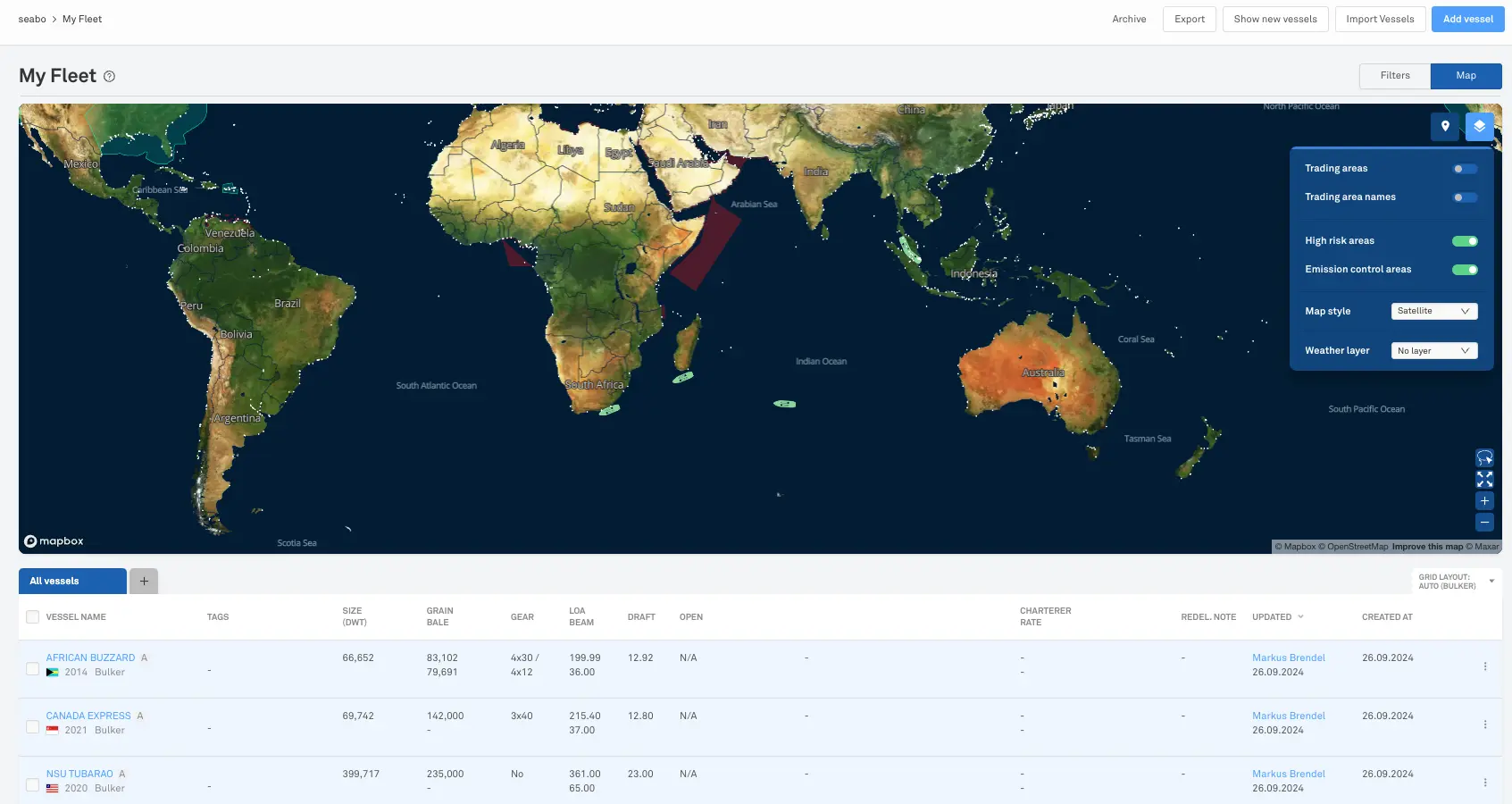 Manage your fleet and maintain all relevant commercial information effortlessly. Update vessel positions, create fixtures/charter employments, and conduct AIS live tracking comprehensively. Collaborate with colleagues by adding remarks and tags to the vessels you are currently focusing on.